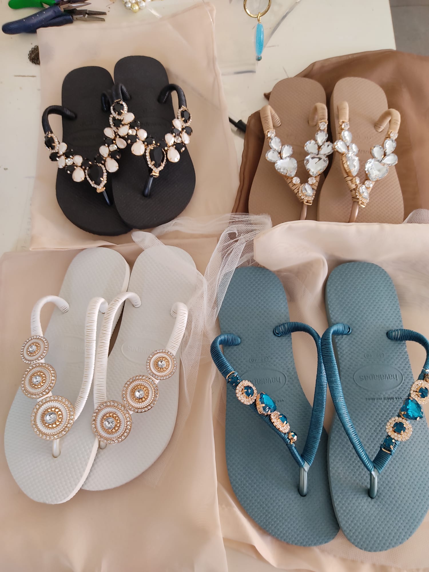 In vari colori e misure vengono decorate con le nostre pietre e perle in una lavorazione accurata per un risultato unico e irripetibile.
